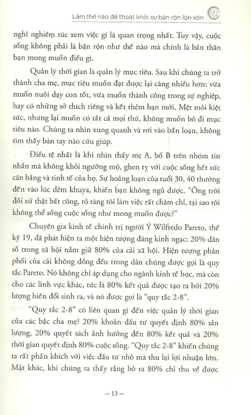 Quản lý thời gian là quản lý cảm xúc, năng lượng, là quản lý cuộc sống, cuộc đời của mình với những công việc khi có thêm một sinh linh mới khiến ta trở thành cha mẹ. Cuốn Nghệ thuật quản lý thời gian của cha mẹ sẽ giúp chúng ta hiểu thêm về nghệ thuật làm cha mẹ, nghệ thuật sống, và nhiều triết lý nhân sinh sâu sắc. Làm cha mẹ là sống thêm một cuộc đời nữa, một lần trẻ thơ nữa và là cách những người có mong muốn làm cha mẹ trưởng thành thêm khi có con.