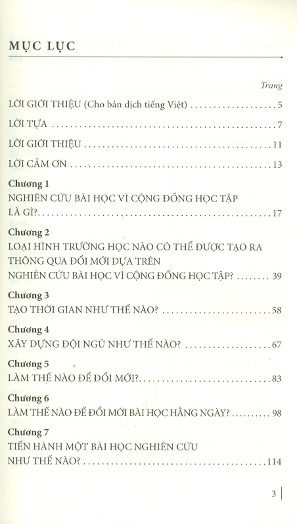 Cuốn sách này khám phá một cách toàn diện ý tưởng Nghiên cứu bài học vì cộng đồng học tập và nhấn mạnh đối với văn hoá nhà trường là bước cần thiết để thay đổi mức độ học tập của học sinh, giáo viên và thậm chí cả phụ huynh nữa. Theo đó, chúng ta không chỉ hướng tới việc thay đổi hoạt động ở cấp độ lớp học mà còn cần đổi mới cách quản lý và lãnh đạo ở cấp độ nhà trường và hơn thế nữa. Cuốn sách này quan niệm rằng Nghiên cứu bài học vì cộng đồng học tập - tầm nhìn và khung toàn diện của đổi mới nhà trường - cần phải được thực hiện một cách tổng thể trong các môn học. Các chương sách bao gồm những nội dung sau:
