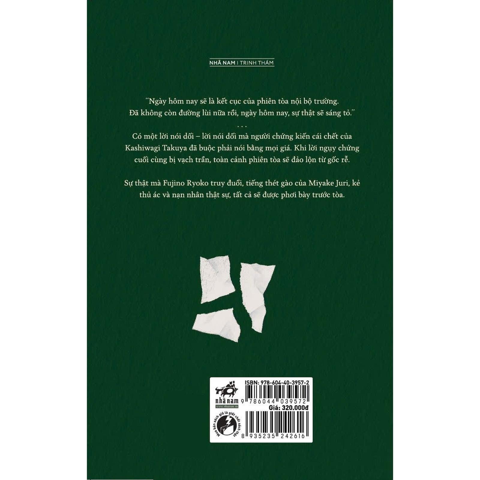 Có một lời nói dối – lời nói dối mà người chứng kiến cái chết của Kashiwagi Takuya đã buộc phải nói bằng mọi giá. Khi lời ngụy chứng cuối cùng bị vạch trần, toàn cảnh phiên tòa sẽ đảo lộn từ gốc rễ.
