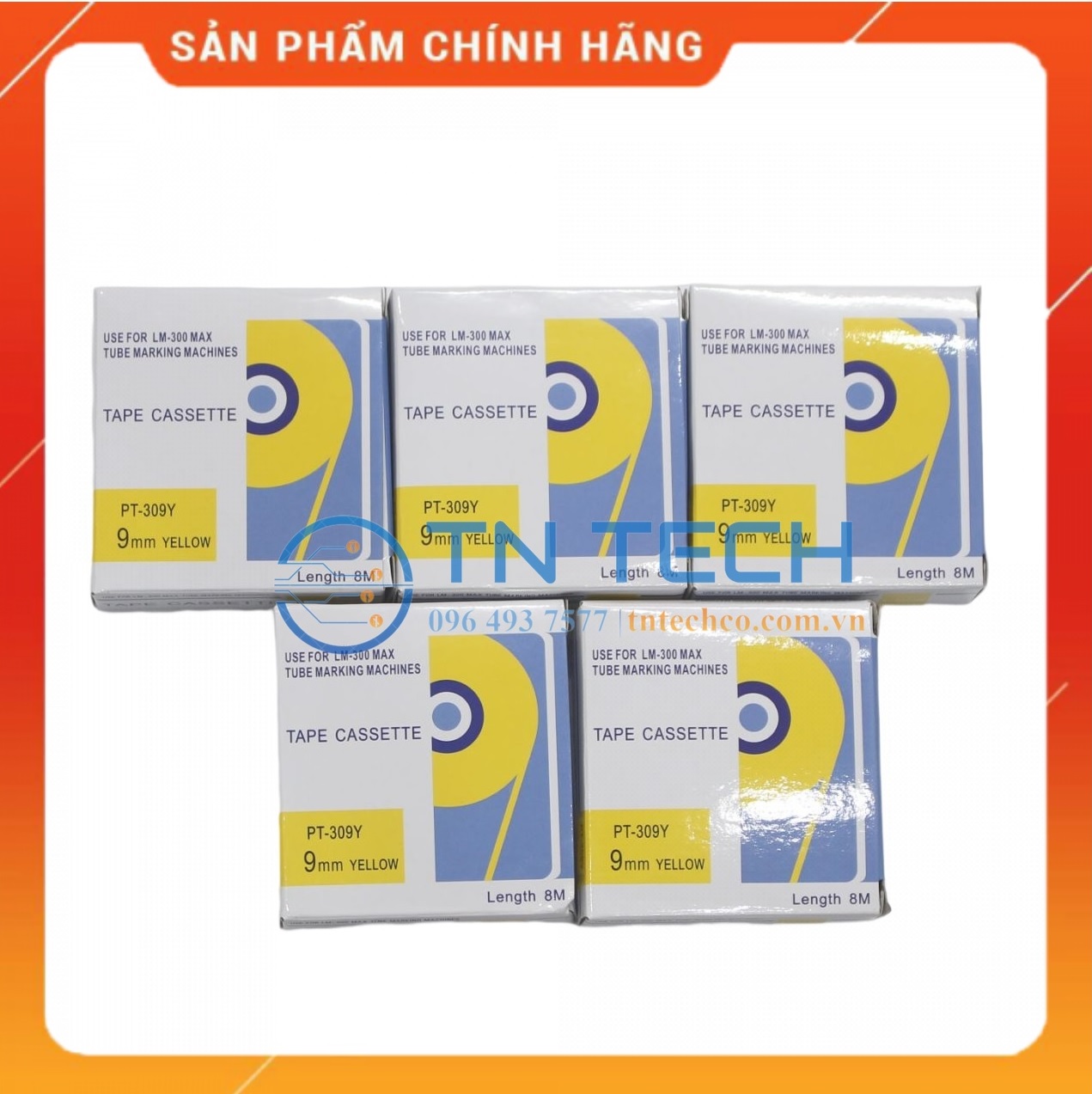 Nhãn vàng LM-TP309Y (9mm, 8m/cái) - Kích thước: 9mm ngang - Xuất xứ: Nhật Bản - Sử dụng cho máy in LM-380E, LM-380A, LM-390A