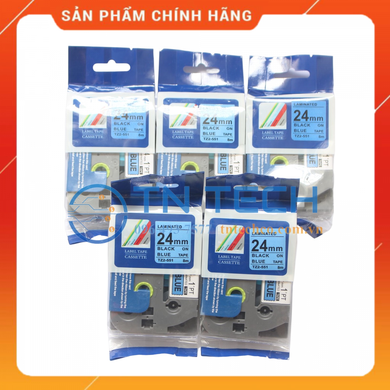 Nhãn in TZ2-551 Brother Nhãn in đa lớp sử dụng cho máy in nhãn Brother, tất cả trong 1, mực nằm bên trong, chống chịu dung môi, hóa chất, nước, dầu mỡ, nhiệt độ Mã