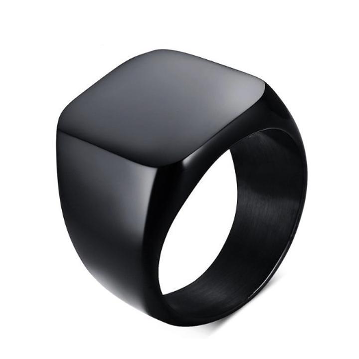 Nhẫn nam titan thời trang mặt trơn vuông to inox cao cấp thép không gỉ trangsucpt màu mạ đen PTNNA25