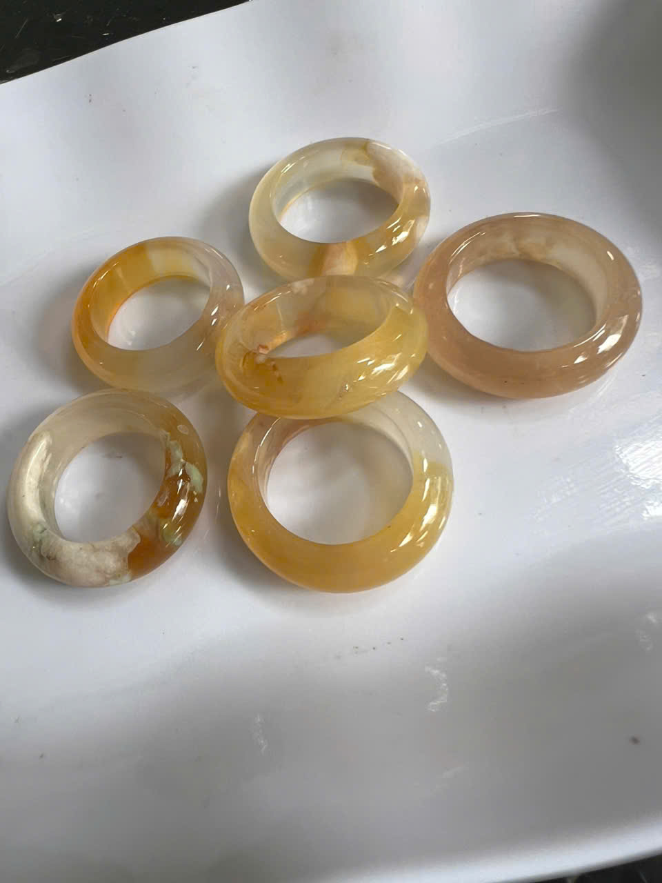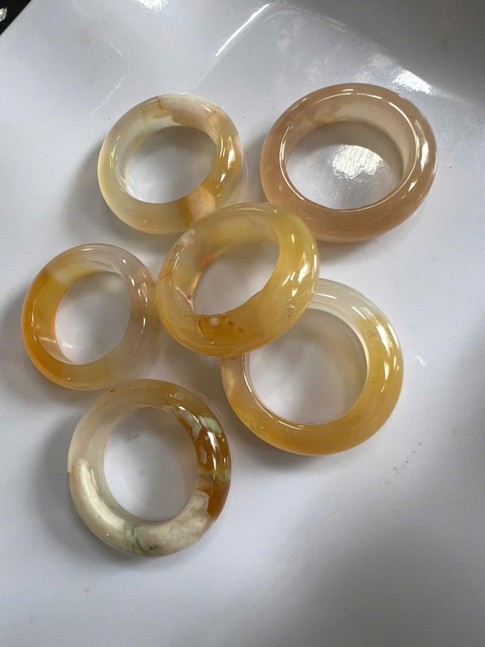 Nhẫn Nữ mới Đá Mã Não Bông Vàng Trắng Đậm Nhạt Bóng Đẹp Ni 17mm Cao 7mm Dầy 4mm Chị em Nữ mệnh Kim mệnh Thủy mệnh Thổ đeo lên tay xinh xắn may mắn ạ