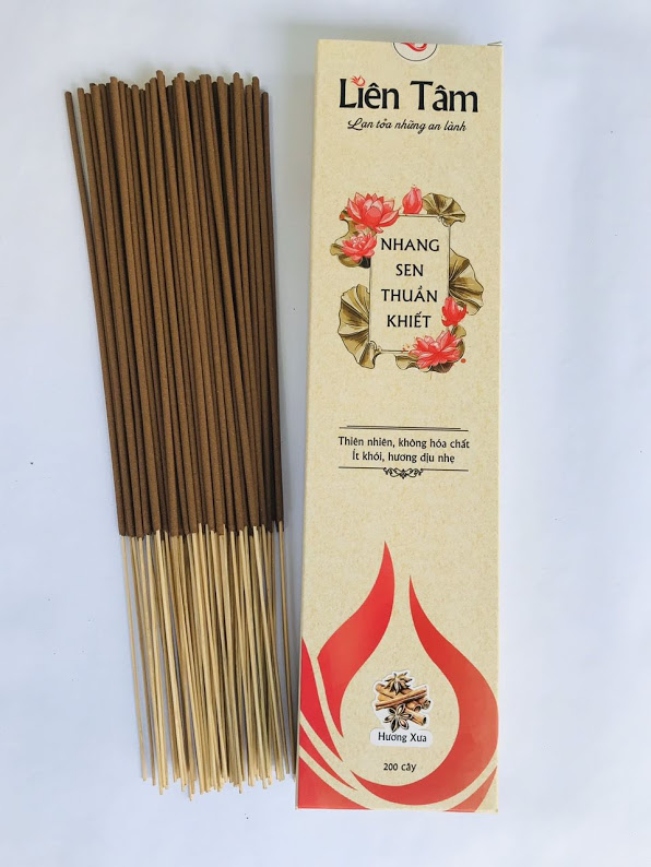 - Nhang sen Hương Xưa: Sen, đại hồi, vỏ quế Nhang sen Liên Tâm đồng hành mang đến giải pháp nhang sạch an lành từ sen: