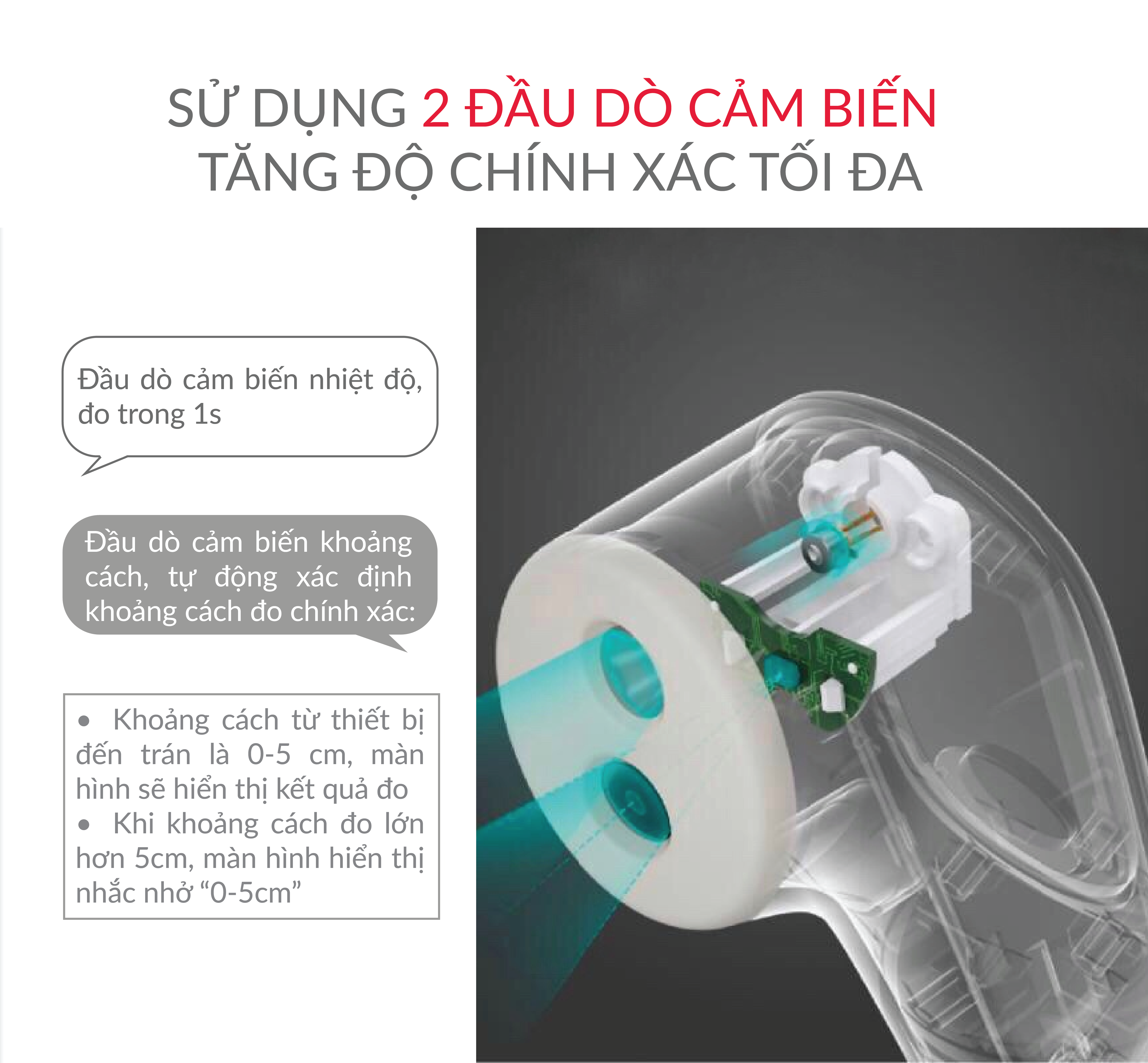 ĐẶC ĐIỂM NỔI BẬT - Thiết kế đặc biệt để giúp đo nhiệt độ cơ thể con người với khoảng cách 0 ~ 3cm (0 ~ 1,2 in) từ thái dương. - Đo lường ổn định và