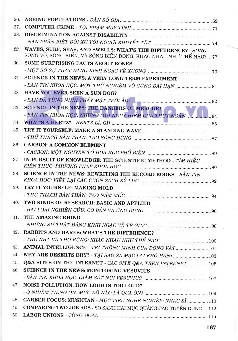 Cuốn sách bao gồm 3 chuyên đề lớn: Ngữ âm, Từ vựng và Ngữ pháp Trong mỗi chuyên đề lớn sẽ được chia thành các chủ đề bao gồm: Các kiến thức trọng tâm.