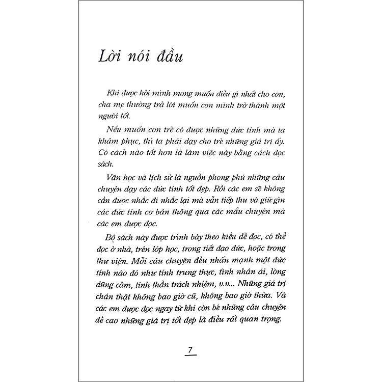 Mua tại TiktokViệc các em được đọc ngay từ khi còn bé những câu chuyện đề cao những giá trị tốt đẹp là rất quan trọng. Và vì thế, NHỮNG CÂU CHUYỆN VỀ NHỮNG GIÁ TRỊ CAO ĐẸP ra đời. Bộ sách này được trình bày theo kiểu dễ đọc, có thể đọc ở nhà, trên lớp học…. Mỗi câu chuyện đều nhấn mạnh một đức tính nào đó như tính trung thực, tình nhân ái, lòng dũng cảm, tinh thần trách nhiệm… Những giá trị chân thật không bao giờ cũ, không bao giờ thừa. Sách gồm 13 câu chuyện về lòng can đảm .