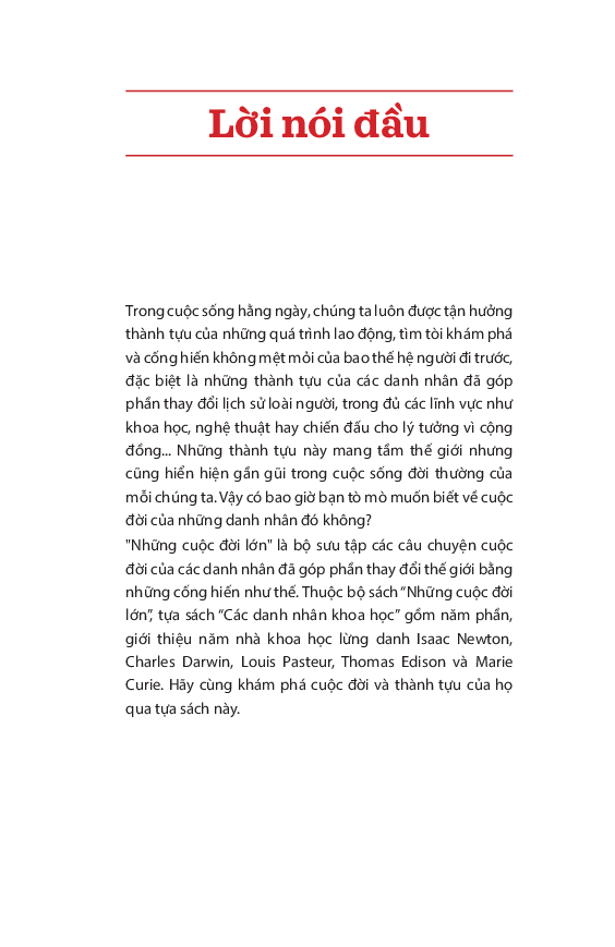 "Những cuộc đời lớn" là bộ sưu tập các câu chuyện cuộc đời của các danh nhân đã góp phần thay đổi thế giới bằng những cống hiến như thế. Hãy cùng khám phá cuộc đời của họ qua bộ sách này.