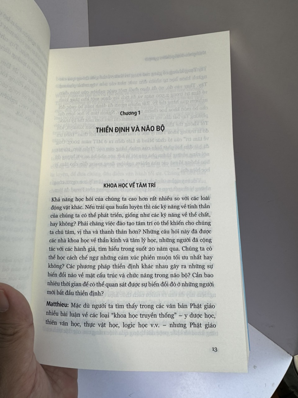 Cuốn sách này chỉ là một đóng góp khiêm tốn cho một lĩnh vực bao la là đối chiếu các quan điểm và kiến thức về bộ não và ý thức của các nhà khoa học với những người hành thiền – nói cách khác là cuộc gặp gỡ giữa hiểu biết trực tiếp và hiểu biết gián tiếp.