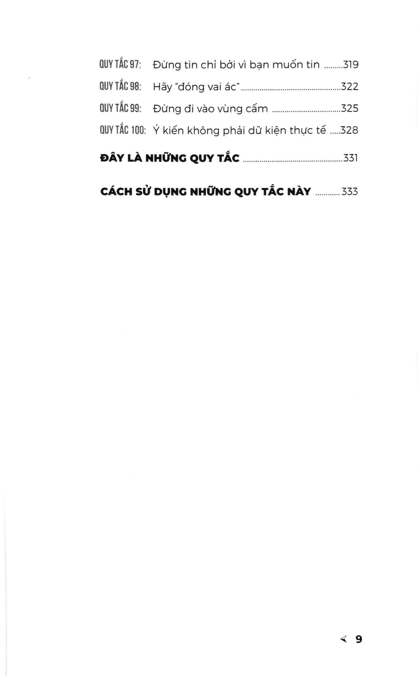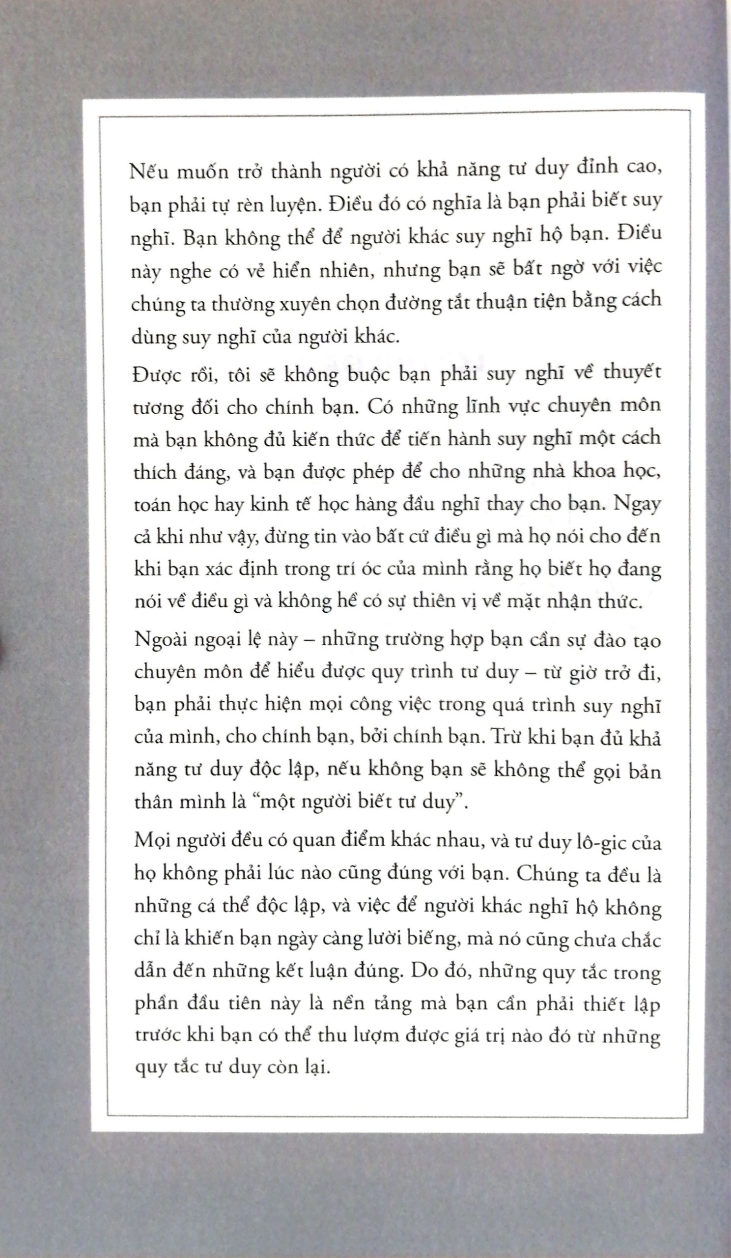 Xét từ góc độ nào đó, cuốn sách này không đề cập tới cách suy nghĩ. Nhiều quy tắc chỉ đơn thuần là chỉ dẫn để loại bỏ những rào cản đã và đang ngăn cản khả năng tư duy thấu đáo của bạn.