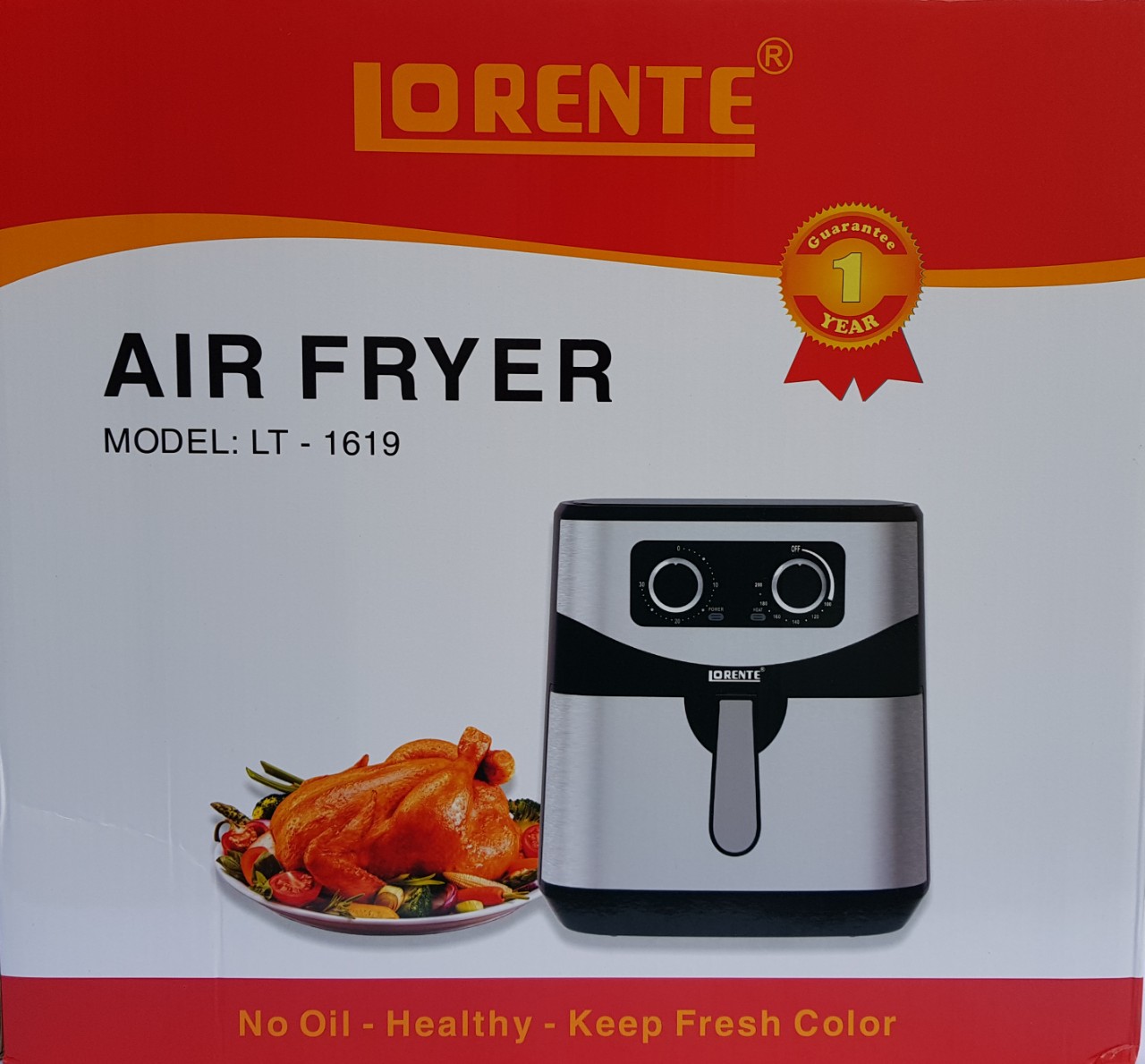 Mua tại TiktokNỒI CHIÊN KHÔNG DẦU LORENTE LT-1619 Công nghệ Rapid Air ( Chiên không khí) tiên tiến Giảm tới 80% lượng dầu mỡ so với cách Chiên truyền thống. Rất tốt cho sức khỏe Thực phẩm chín đều tất cả các mặt, từ ngoài vào trong nhờ công nghệ đối lưu luồng khí nóng Không bị bắn dầu mỡ khi chiên. An toàn hơn, sạch sẽ bếp hơn. Thiết kế Hiện đại. Kiểu dáng và Chất liệu sang trọng Nồi được chế tạo bằng các chất liệu thân thiện với môi trường, không gây mùi, không có chất dộc hại Mặt ngoài nồi được ốp Inox cao cấp, Sáng bóng. Vừa chắc chắn, Sang trọng lại rất dễ vệ sinh lau chùi Cả 2 lòng giỏ chiên đều được làm bằng thép không gỉ, và được tráng chống dính cao cấp. Thức ăn không bị dính két và cháy khét. Qui trình vệ sinh sau sử dụng rất nhanh và sạch Nồi thiết kế hai núm điều chỉnh Nhiệt độ và Hẹn giờ bằng Cơ. Cực kì chính xác và Bền bỉ. Có âm báo khi kết thúc quá trình nấu.