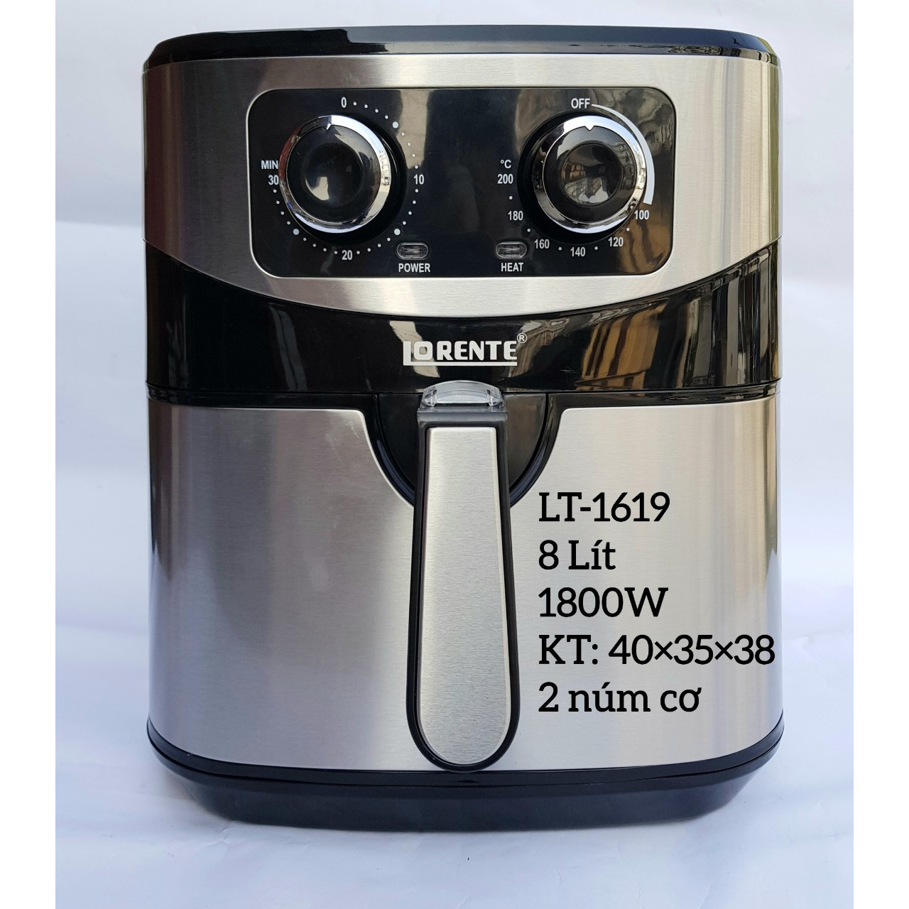 ✨Nồi Chiên Không Dầu Dung tích Lớn 8 Lít, Công suất 1800W, Giỏ Chiên Rời, Ốp Inox LORENTE LT-1619 - HÀNG CHÍNH HÃNG