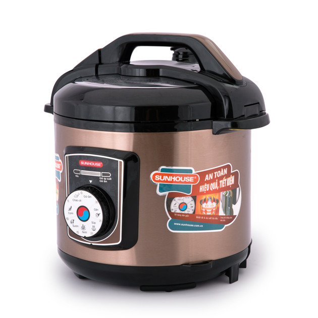 • Đặc tính sản phẩm Màu sắc Vàng - Nâu - Đỏ Dung tích  6 Lít Chất liệu lòng nồi Chống dính WHITFORD, USA Chức năng Nấu cơm, giữ ấm, hầm, ninh thực phẩm Điện áp 220V/ 50Hz Công suất 1000W Hẹn giờ nấu Không Trọng lượng 6,1 Kg Nút điều khiển Núm xoay Dây điện Dây rời Đặc điểm khác Giữ ấm 24h, bảng điều khiển bằng Tiếng Việt, điều khiển dễ dàng Thông tin chung Thương hiệu Sunhouse Bảo hành 12 tháng Mỗi loại thực phẩm lại có một nhiệt độ chín tối ưu khác nhau, để món ăn ngon mà vẫn giữ được nguyên hàm lượng chất dinh dưỡng.  Tuy nhiên, với phương pháp nấu ăn thông thường (áp suất thường, nhiệt độ 100 độ C), có nhiều món ăn để đạt được độ chín hoàn hảo thì cần phải ninh trong thời gian dài. Điều này vô tình làm ảnh hưởng đến hàm lượng chất dinh dưỡng của sản phẩm, tốn thời gian và nhiên liệu. Trong những trường hợp này, nồi áp suất chính là một giải pháp thay thế tối ưu. Bằng việc thay đổi áp suất & tăng nhiệt độ nấu trong nồi, các món ăn vẫn đảm bảo được yếu tố ngon – dinh dưỡng. Thao tác với nồi áp suất lại đơn giản, an toàn, tiết kiệm thời gian và năng lượng. Nồi áp suất điện đa năng SUNHOUSE SHD1756 mang lại tính tiện dụng cao, là sự lựa chọn hoàn hảo khi bạn cần chuẩn bị những bữa tiệc dành cho gia đình và bạn bè mà không mất quá nhiều thời gian.  BỀN CHẮC – AN TOÀN – TIỆN DỤNG