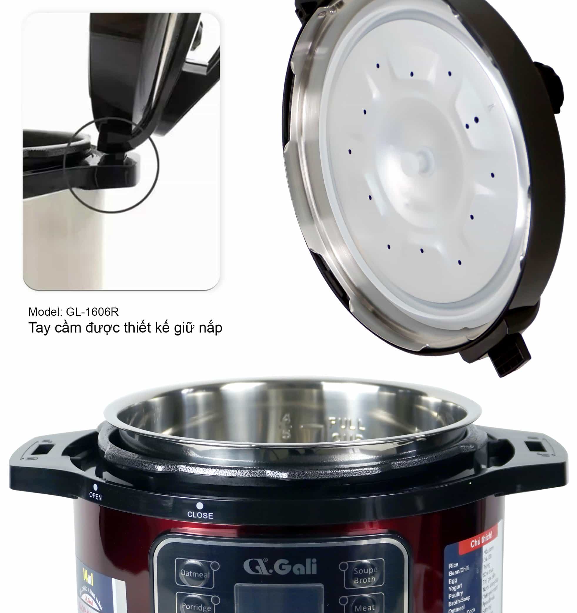- Tiết kiệm năng lượng: Sử dụng ít năng lượng hơn so với nấu ăn truyền thống. Sử dụng và bảo quản nồi áp suất GALI GL-1606R