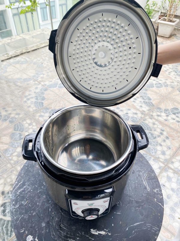 - Nồi Áp Suất Đa Năng có khóa bảo vệ đóng mở - Nồi được điều khiển áp suất tự động, nắp mở tiện lợi. Nồi có lớp lót chống dính và có van xả