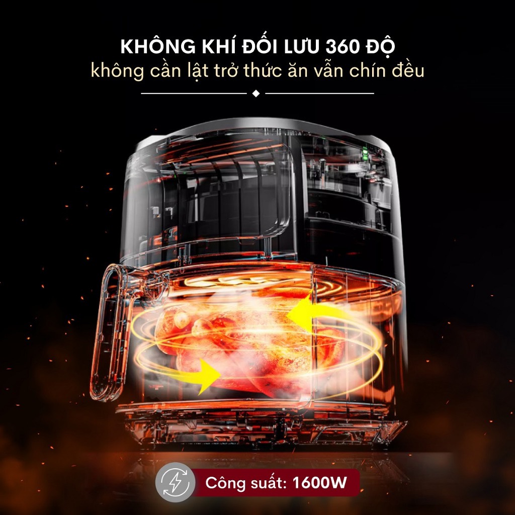 THÔNG SỐ KỸ THUẬT : - Dung tích rổ chiên 5.5L - Dung tích nồi chiên 7L - Bảng điều khiển Cảm ứng/ chạm - Ngôn ngữ Tiếng Việt - Điện áp 220-240V 50/60Hz - Công suất 1600W - Màu sắc Xám - Hiển thị Đèn Led trắng - Lớp phủ rổ bên trong/ ngoài Có - Lớp phủ nồi trong / ngoài Có - Thực đơn tự động 8 (Khoai tây chiên, Bít tết, Rau xanh, Gà, Bánh nướng, Cá, Đồ đông lạnh, Pizza) -