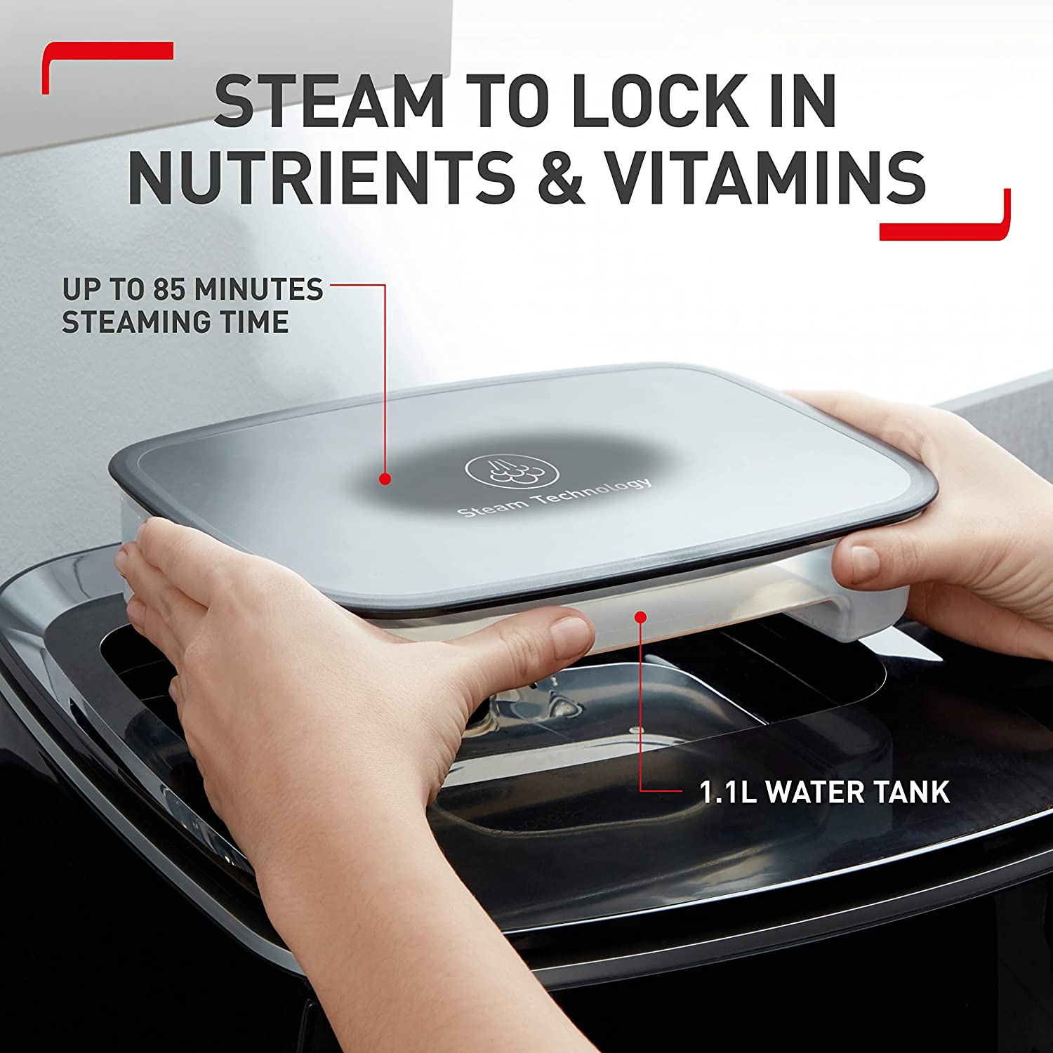 Dung tích nồi hấp bên trong Tefal FW2018 đạt 1.1 Lít nước, thời gian hấp có thể kéo dài trong 70-85 phút. Ngoài ra, nồi còn có khả năng tự động ngắt điện, chuông báo khi thức ăn đã chín. Khi nấu xong, người dùng có thể thảnh thơi nghỉ ngơi và đợi chờ đến khi dọn món ngon ra bàn ăn.