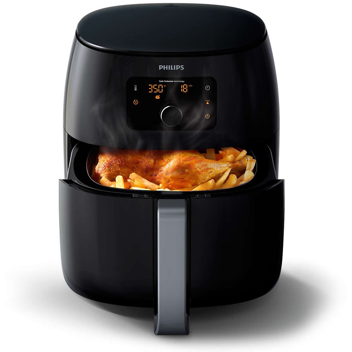 Nhờ công nghệ Twin Turbostar nồi chiên Philips giúp thức ăn chín đồng đều và giữ được hương vị đặc trưng của từng loại thực phẩm. Ngoài ra, chất béo không cần thiết sau khi được tách ra nhỏ xuống khay đựng có thể sử dụng để chiên, xào các món khác.