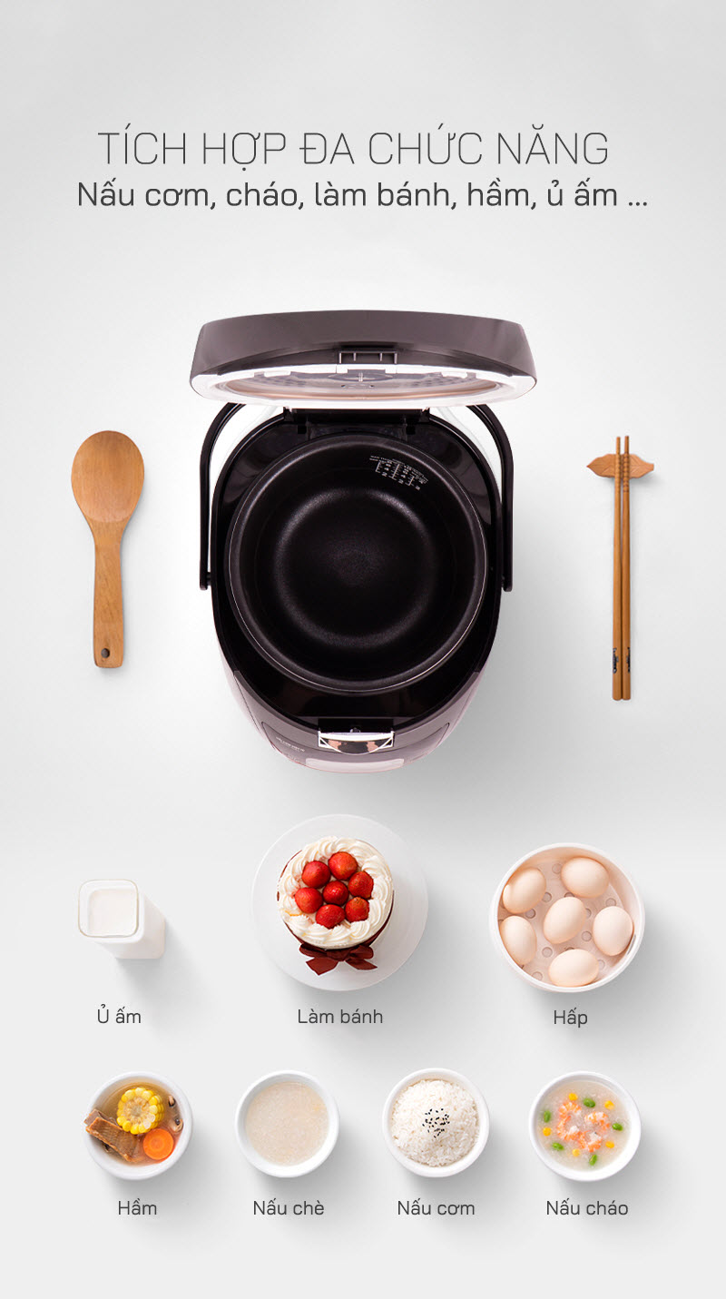 ĐẶC ĐIỂM NỔI BẬT Nấu tự động, thức ăn cực mềm Giữ 100% chất dinh dưỡng trong thức ăn Nồi nấu tiết kiệm điện năng và nấu cháo cực dễ dàng Không cần canh giữ