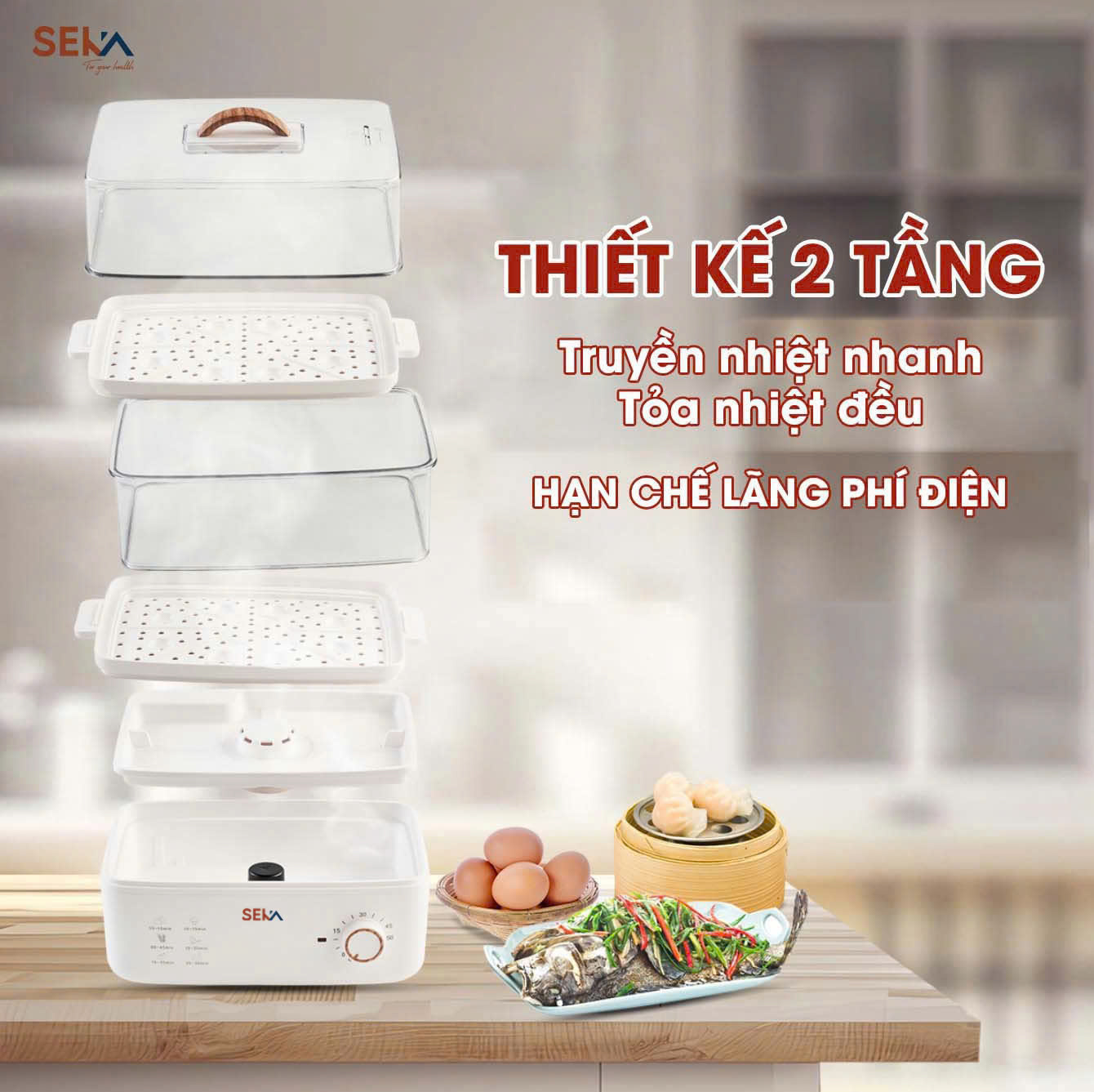 Nồi Hấp Điện 2 Tầng Seka Chính Hãng - Sử Dụng Đa Năng Thông Minh