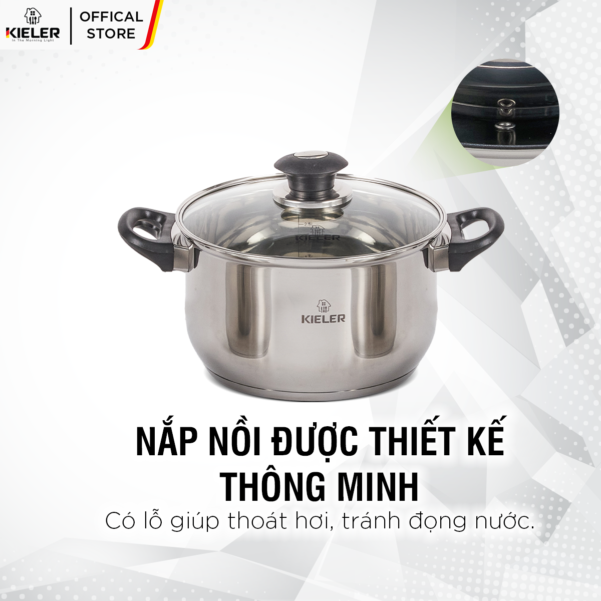 ✨Nồi Inox 5 đáy KIELER đáy từ 18cm nấu nhanh, tiết kiệm điện, có 2 lớp chống dính Whitford ít bám dầu mỡ RW1222-18