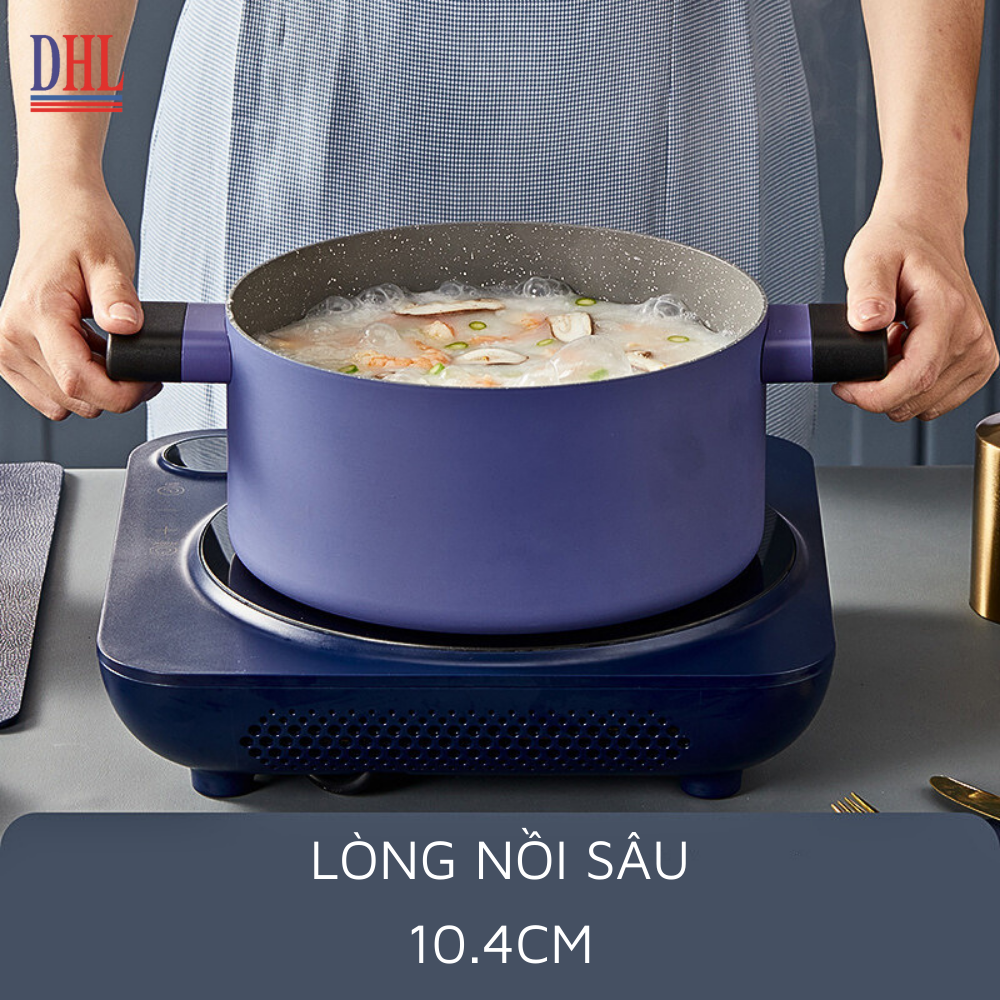 • Độ dày 3.0 mm cho khả năng dẫn nhiệt tốt và giữ nhiệt lâu giúp món ăn chín nhanh, tiết kiệm thời gian nấu nướng.   Dùng tốt trong máy rửa bát Chảo có thể dễ dàng xếp gọn trong máy rửa bát, tiết kiệm thời gian dọn rửa, vệ sinh.   Tay cầm thoải mái, cách nhiệt tốt Thiết kế tay cầm hai bên rộng và vững chắc mang lại cảm giác thoải mái khi thao tác và an toàn cho người sử dụng mà không cần găng tay làm bếp khi chịu được nhiệt lên tới 180 độ C.     Thông số kỹ thuật Nồi kho thịt cá chống dính vân đá cao cấp Hàn Quốc Mitomo Cooker King