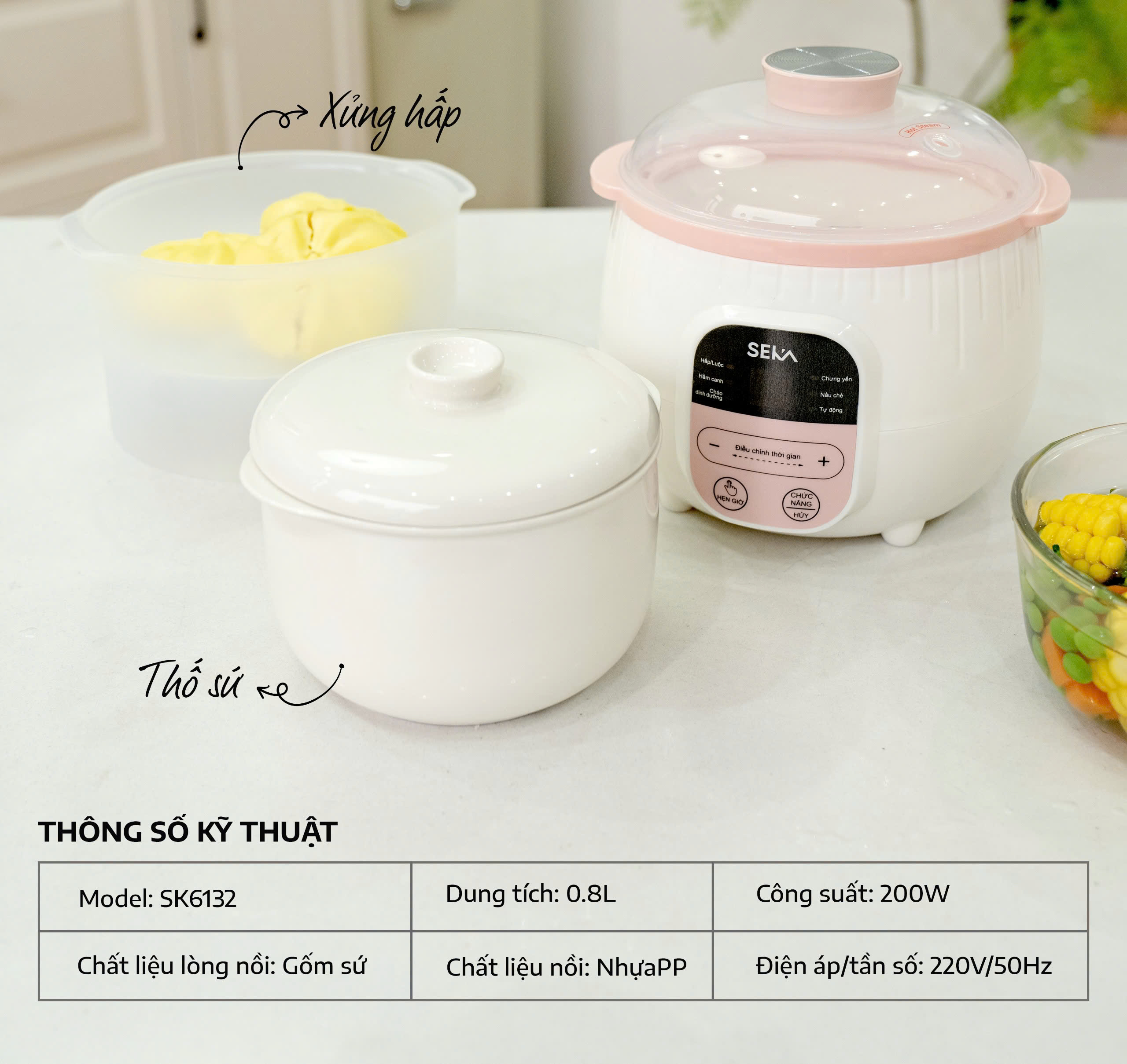 Nồi nấu cháo chậm SEKA SK6132 dung tích 0.8l, nồi nấu cháo cho bé, kho cá chậm, hầm cách thủy, chưng yến Nồi nấu chậm Seka SK6132 là thiết bị nhà bếp thông minh, được