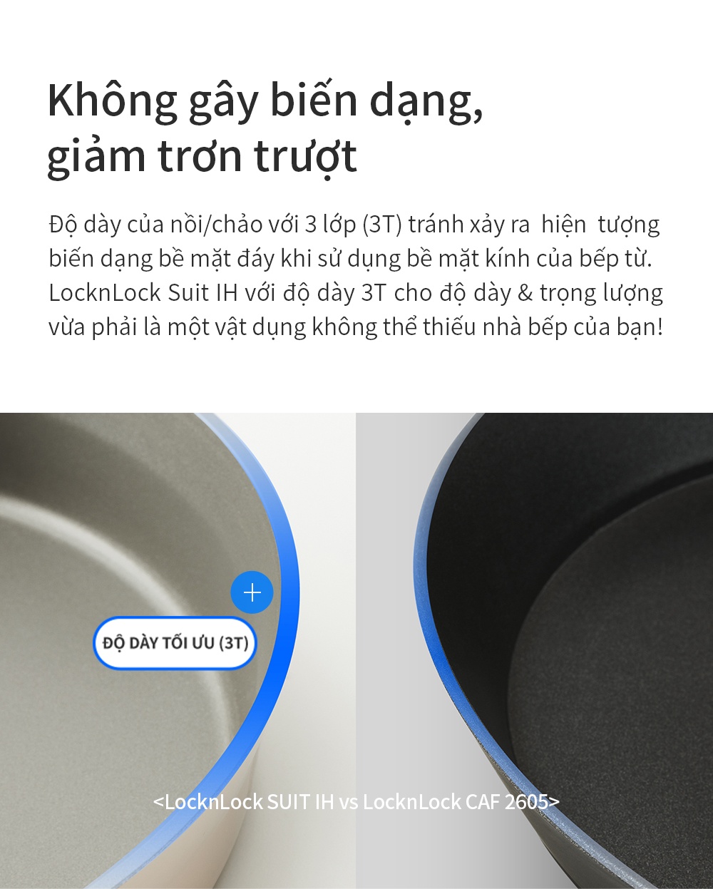 Đáy 3 lớp truyền nhiệt nhanh – giúp nấu chín đều, tiết kiệm thời gian Vung kính chịu nhiệt có lỗ thoát hơi – tiện theo dõi món ăn không cần mở nắp Chất liệu