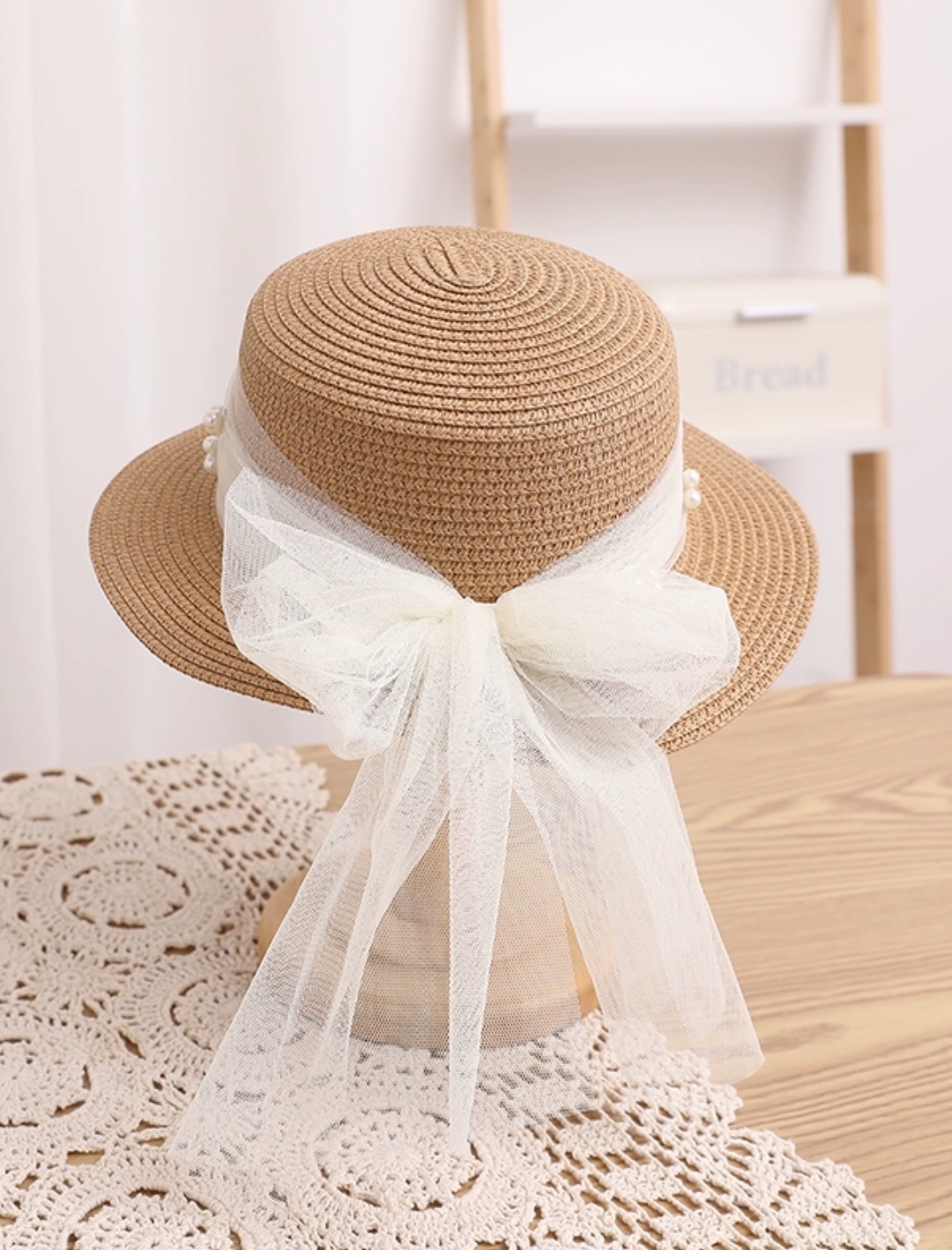 Mũ nón đi biển vành nhỏ chóp bằng phối đai trắng ngọc trai nhân tạo chất liệu cói chống nắng thoáng mát thời trang Hàn Quốc Chất liệu cói Kiểu dáng thời trang chống nắng