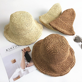 Mua tại TiktokNón mũ Nữ cói Dệt Móc Tay thoáng khí Có Thể Gập Đi Biển