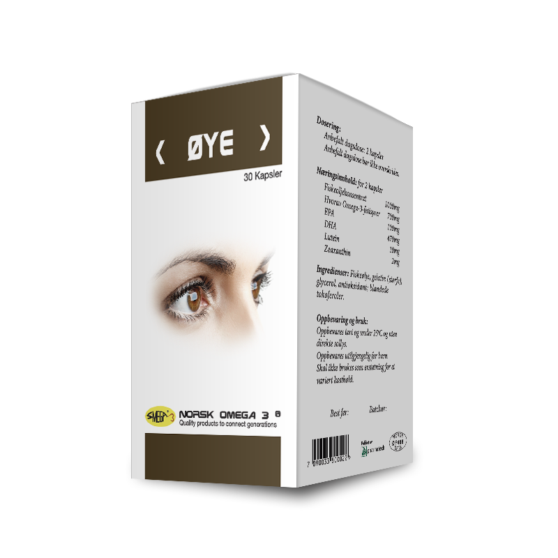 Omega 3 Norsk ØYE 30 Viên THÀNH PHẦN: Thành phần có trong 2 kapsler NORSK ØYE Fiskeoljekonsentrat 1000mg Hvorav Omega-3-fettsyrer 700mg EPA 100mg DHA 470mg Lutein 10mg Zeaxanthin 2mg - Ingredienser:Fiskeolje,gelatin(storfe) - glycerol, antioksidant,blandede