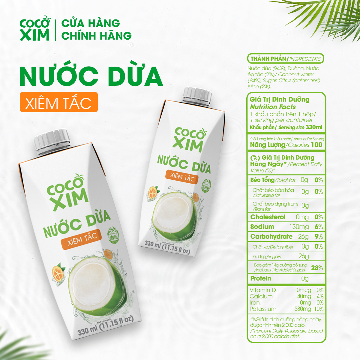 Hộp nước dừa tươi nguyên chất dừa tươi 100% vi tắc thơm mát Cocoxim 330mL