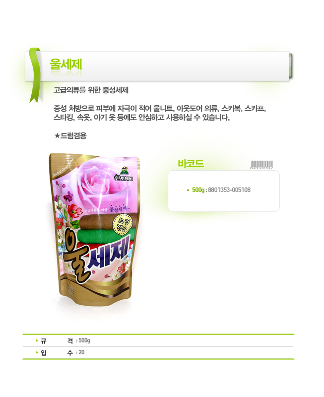 Nước giặt vải Len, vải Dạ mùi hương nước hoa Sandokkaebi túi 500g nhập khẩu Hàn Quốc