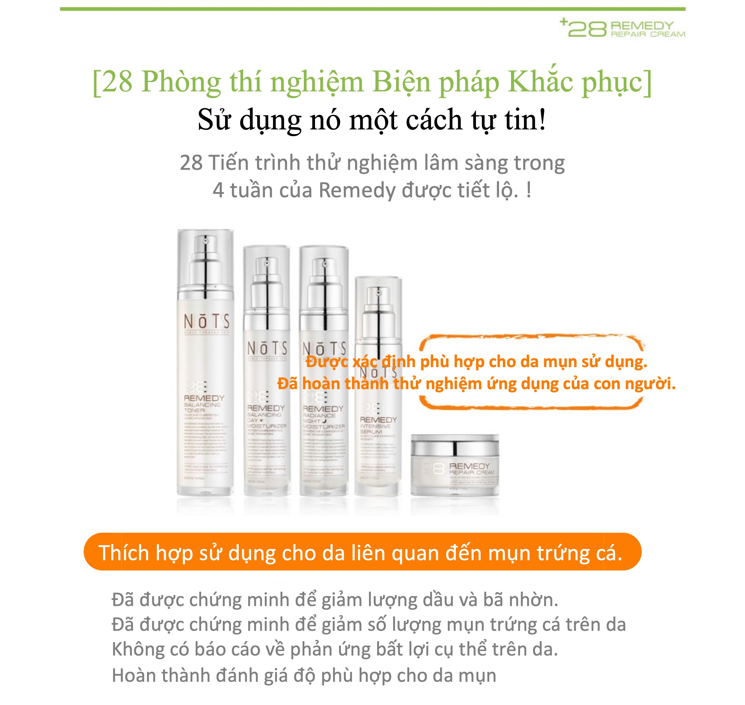 Mua tại TiktokNước hoa hồng cân bằng da NoTS 28 Remedy Balancing Toner là sản phẩm thuộc dòng 28 Remedy ứng dụng công nghệ mới với chiết xuất cây xương rồng giàu chất Aquaporin có tác dụng cung cấp độ ẩm tối ưu và làm mát da hiệu quả. NoTS 28 Remedy Balancing Toner sử dụng công thức chiết xuất từ nhiều loại thực vật tự nhiên, lý tưởng nhất khi sử dụng với làn da nhạy cảm, dễ kích ứng, nổi mụn. Nước hoa hồng giúp lỗ chân lông se khít, da sạch thoáng, mịn màng đồng thời sẵn sàng hấp thu dưỡng chất của các bước chăm sóc da tiếp theo. Đồng thời, các thành phần hoạt tính như Adenosine, Niacinamide sẽ tăng cường sức khỏe làn da, làm chậm quá trình lão hóa, ngăn ngừa nếp nhăn, duy trì làn da sáng khỏe, mịn màng đầy sức sống. Thành phần chính