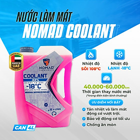 NƯỚC LÀM MÁT Ô TÔ, XE MÁY NOMAD COOLANT ANTIFREEZE -18 ĐỘ C, PHA SẴN 33% - CAN 4L NHẬP KHẨU DUBAI Nước làm mát ô tô màu hồng Nomad Coolant 33% (-18 độ C) được