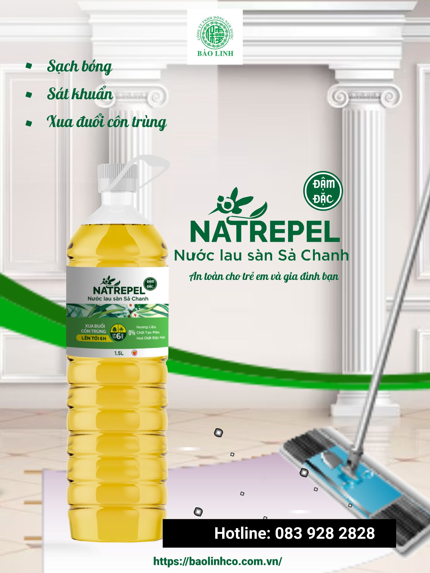 - Nước lau sàn Sả chanh giúp đẩy nhanh các vết bẩn cứng đầu như sàn nhà bị vấy bẩn, mùi thức ăn, vết bẩn lâu ngày bám trên bề mặt, giúp vệ sinh nhà cửa thơm mát, đặc biệt mùi quế tự nhiên không nồng nặc mùi hóa chất như nước lau sàn công nghiệp. – Lau nhà, lau sàn gỗ, lau sàn kính – Dùng hiệu quả và thay thế cho cả nước lau kính, nước lau kiếng. – Làm sạch không khí: trong quá trình xúc tác sinh ra O3 (ozone), không những sạch được vi khuẩn, còn làm tăng oxy – trong không khí. phun trong không khí giúp làm sạch không khí, hạn chế mùi khó chịu, diệt khuẩn phòng điều hòa. – Xua đuổi muỗi và các loại côn trùng hiệu quả.