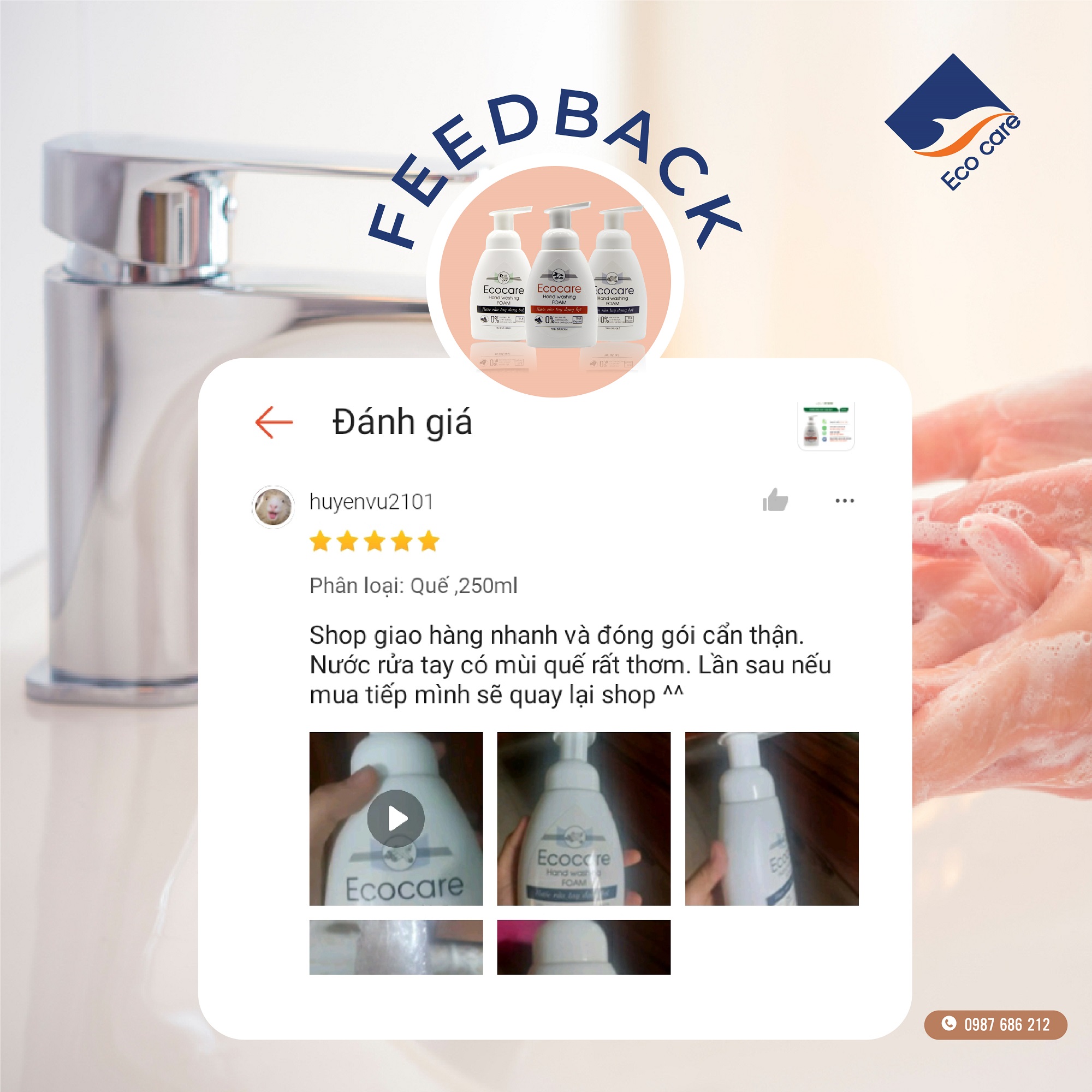 • Trước tiên, Công ty Ecocare xin cảm ơn Quý Khách hàng đã tin tưởng lựa chọn sản phẩm Nước rửa tay tạo bọt Hữu cơ Bồ hòn - Nước rửa tay diệt khuẩn tinh dầu Quế Ecocare