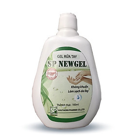 Gel rửa tay SP Newgel Thành phần: Ethanol, glycerin, carbomer, hydroxypropylmethyl cellulose, lô hội, polysorbat 80, benzalkonium clorid, CI 42090, mùi thơm, nước tinh khiết. Công dụng: Giúp kháng khuẩn và làm sạch da tay