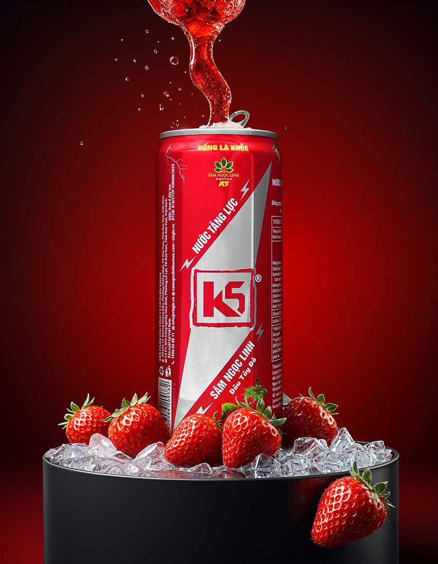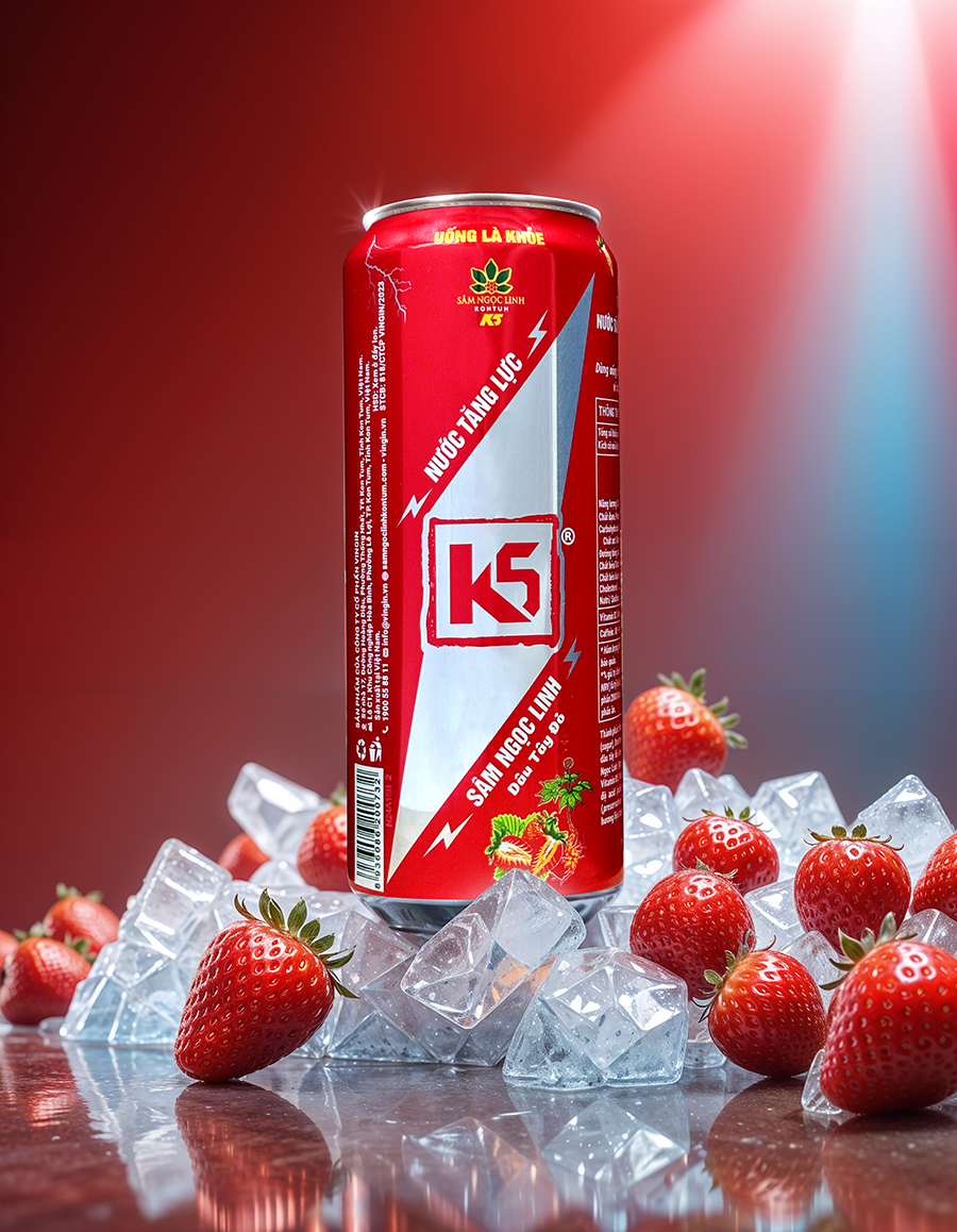 ✨Nước Tăng Lực K5 Sâm Ngọc Linh Thùng 24 Lon Vị Dâu Tây Đỏ (320ml/Lon)