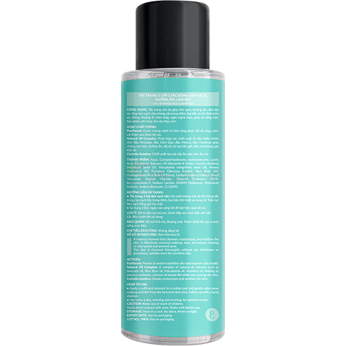 Công thức 3 trong 1: Tẩy trang, làm sạch và cấp ẩm.