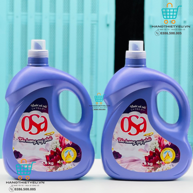 NƯỚC XẢ VẢI OSA CAO CẤP TỎA HƯƠNG QUÝ PHÁI 3.8Kg (4 can/thùng) NƯỚC XẢ VẢI OSA DƯỠNG VẢI BỀN MÀU 3.8Kg (4 can/thùng) NƯỚC XẢ VẢI OSA DỊU ÊM THƠM MÁT 3.8Kg (4 can/thùng)