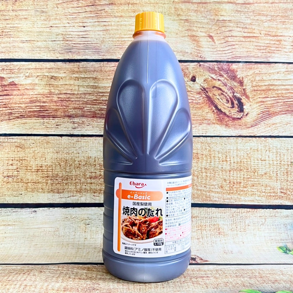 Nước xốt thịt nướng E-basic Yakiniku sauce Ebara 2,15KG - Xuất xứ: Nhật Bản - Thương hiệu: Ebara - Thành phần: Nước tương, xi-rô glucose fructose, đường, giấm táo, gia vị lên men, tỏi, bột