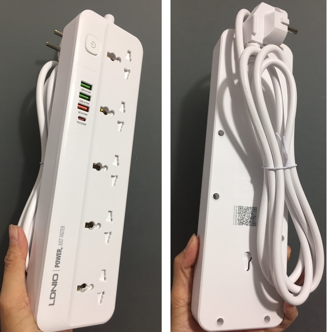 Mở hộp ổ cắm điện đa năng LDNIO SC5415, 5 lổ + 4 USB (3A1C) đầu 2 chấu tròn EU - hàng nhập khẩu