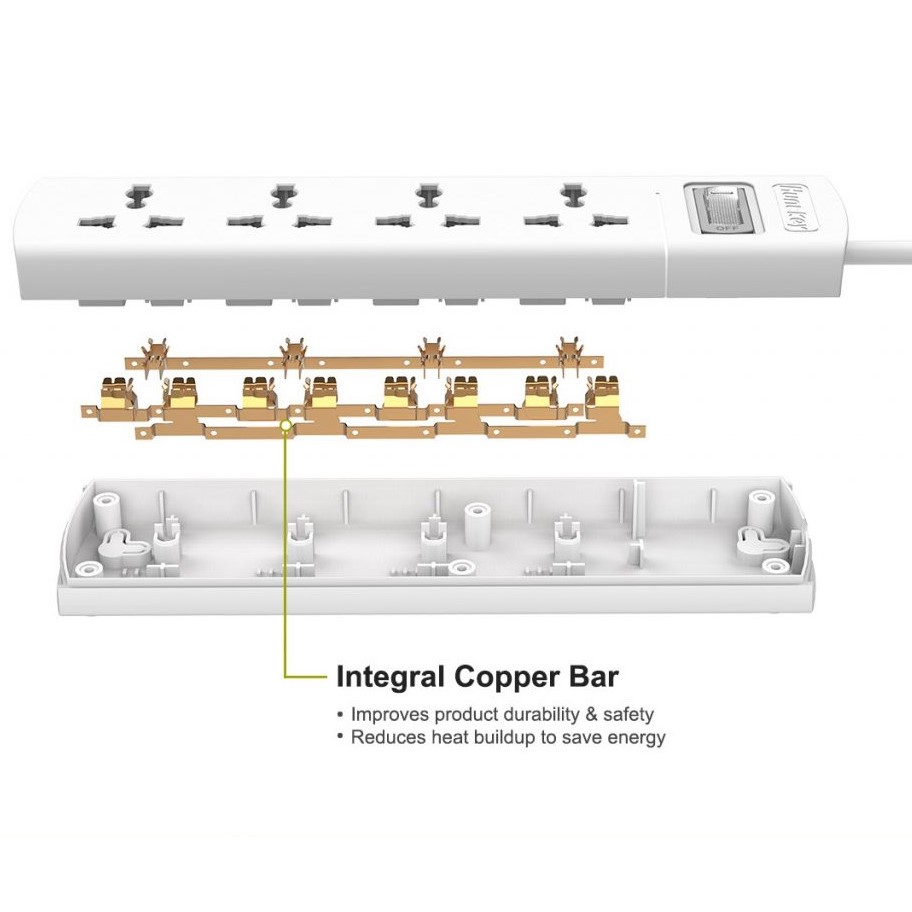 Ổ cắm nối dài đa năng cao cấp Dây dẫn ĐỒNG NGUYÊN CHẤT, ĐÚNG TIẾT DIỆN 100% Bảo vệ quá tải bằng công tắc tự động (MINI CB) Tiếp điểm sử dụng nguyên liệu đồng