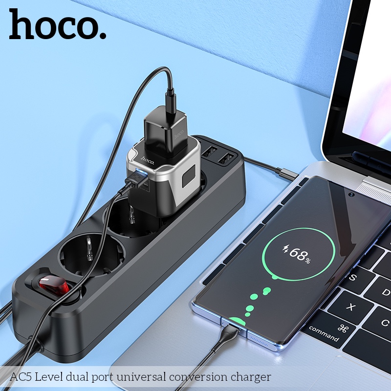 THÔNG SỐ KỸ THUẬT: AC5 1. Chất liệu: Chất liệu PC chống cháy 2. Đầu ra AC: 110V-230V , Chịu tải : 1840W 3. Usb-a 1/ 2: 5V / 2.4A, tổng đầu ra: 5V /