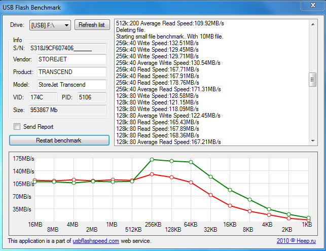 T đã tiến hành một bài kiểm tra tốc độ của ổ cứng Trenscend Storejet M3 trên 2 phần mềm HD Tune Pro và FlashBench để mọi người tham khảo. Dưới đây là kết quả của bài kiểm tra.