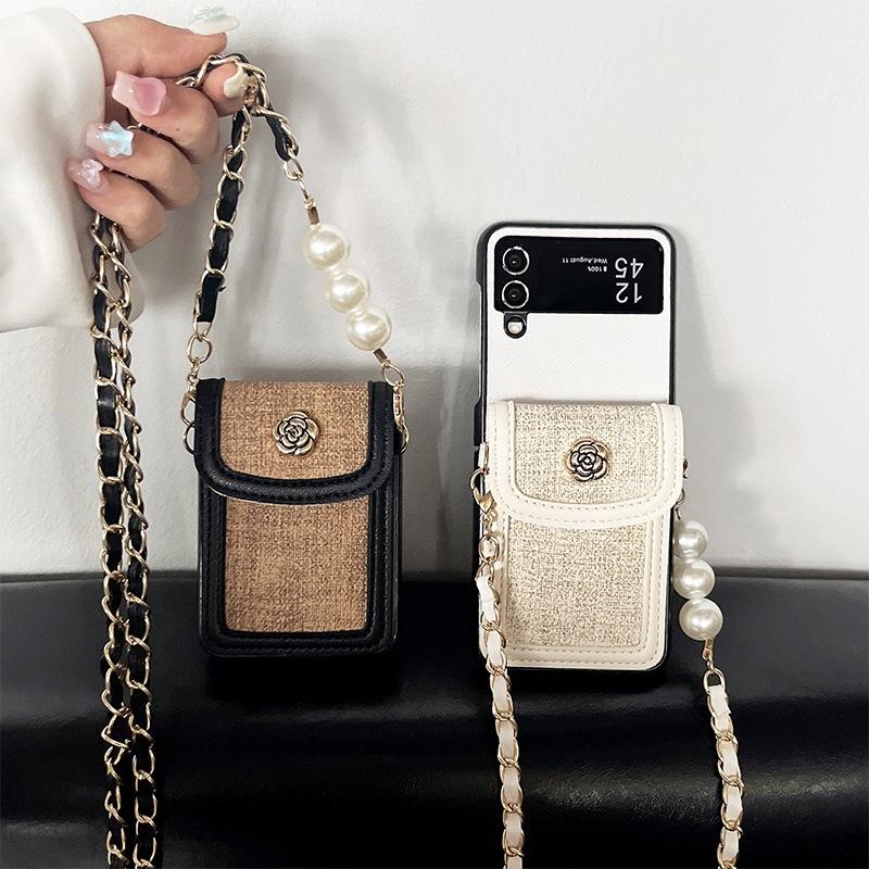 Ốp Lưng dành cho Samsung Galaxy Z Flip 6 / Z Flip 5 dạng ví, kèm phụ kiện xinh xắn - chất liệu : vải bố , khung nhựa cứng - kèm dây đeo ngọc