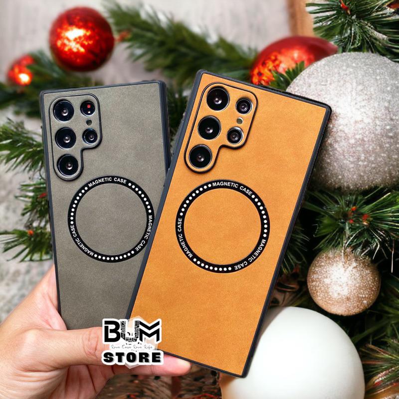 - Ốp lưng da có vòng magsafe hỗ trợ sạc không dây tiện lợi cho máy Samsung S25 Ultra / S24 Ultra/ S24 Plus / S23 Ultra / S22 Ultra - Mặt lưng da lộn