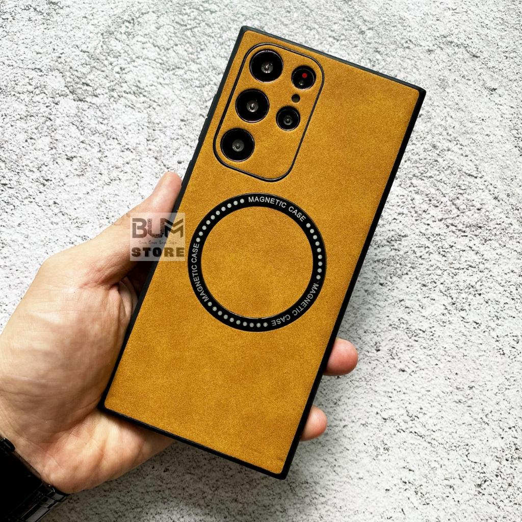 Ốp Lưng Da Lộn Cao Cấp Có Vòng Sạc Từ Tính Cho Samsung S25 Ultra / S25 Plus / S24 Ultra / S24 Plus - Chất liệu : da lộn , viền silicon - Có