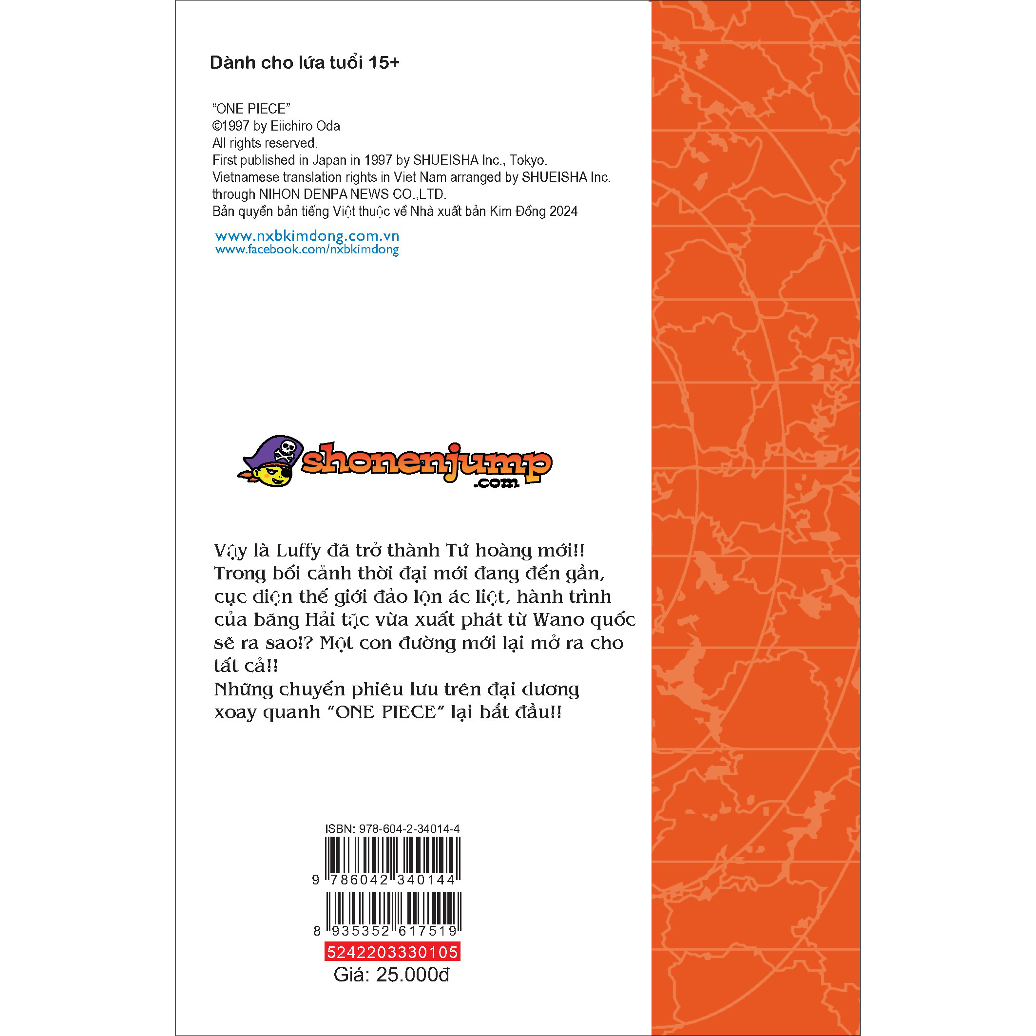 Mua tại TiktokGiới thiệu Vậy là Luffy đã trở thành Tứ hoàng mới!! Trong bối cảnh thời đại mới đang đến gần, cục diện thế giới đảo lộn ác liệt, hành trình của băng Hải tặc vừa xuất phát từ Wano quốc sẽ ra sao!? Một con đường mới lại mở ra cho tất cả!!